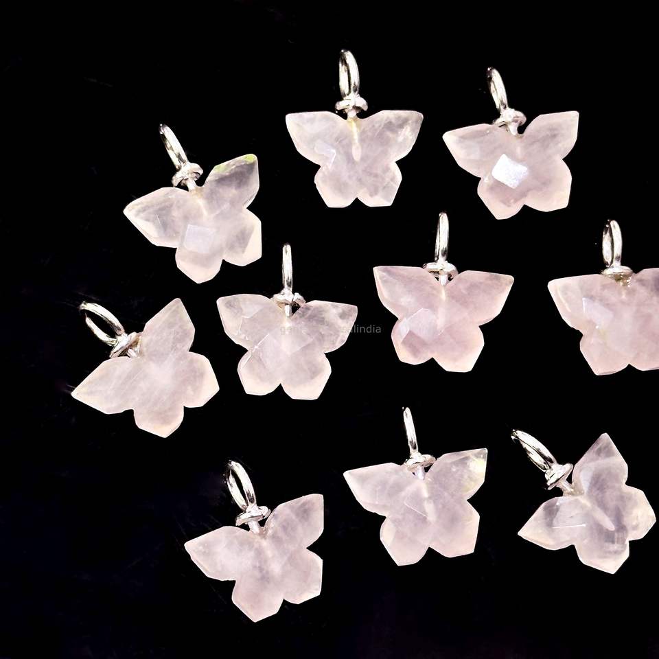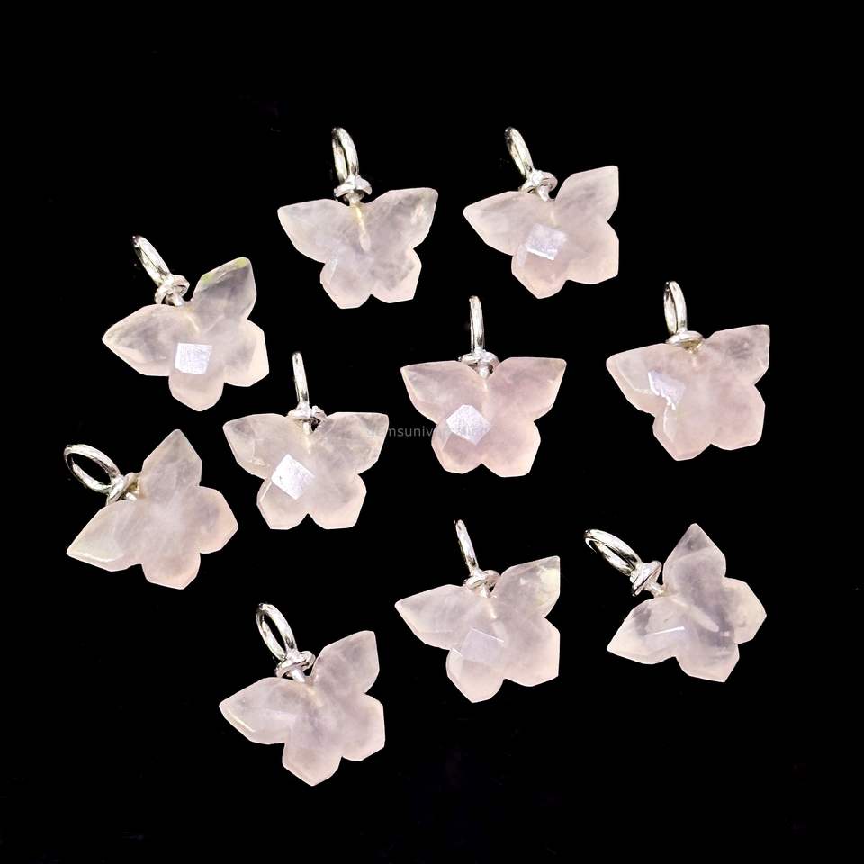 จี้ผีเสื้อโรสควอตซ์ธรรมชาติ เงินแท้ 925 แกะสลักด้วยมือ จี้พลอยโรสควอตซ์ สำหรับทำเครื่องประดับ ขายส่ง