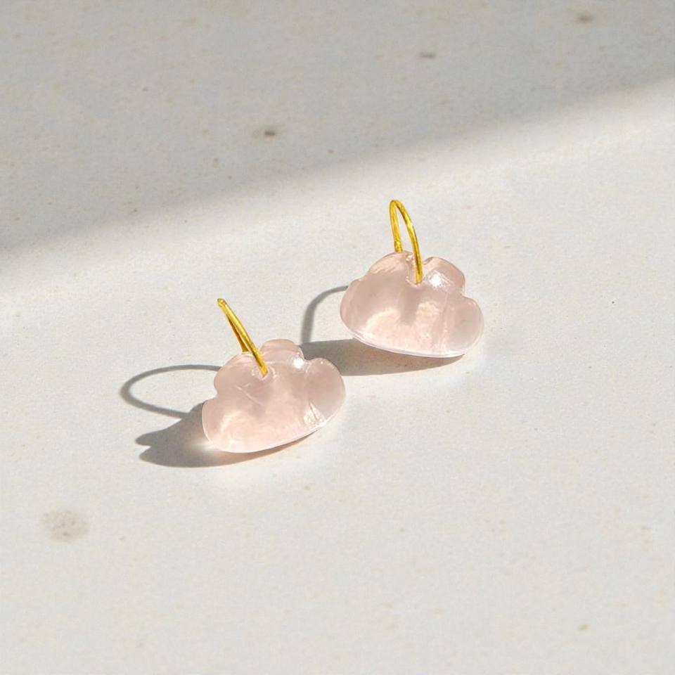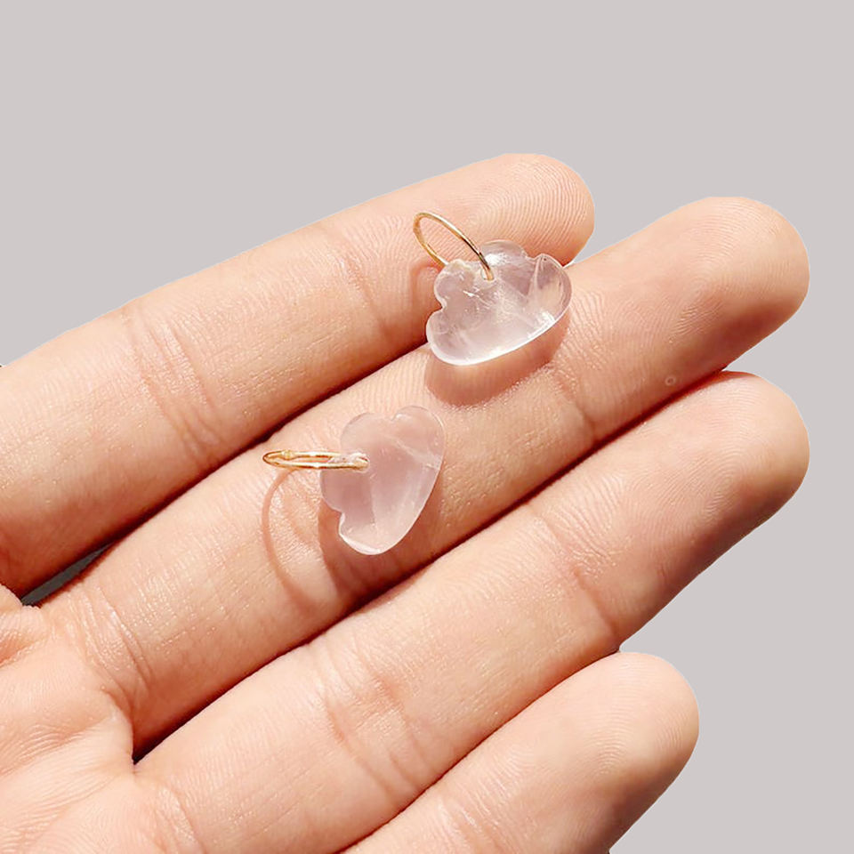 จี้รูปทรงเมฆทำจากโรสควอตซ์ธรรมชาติ พร้อมห่วงทอง งานแฮนด์เมด อุปกรณ์ทำเครื่องประดับจากหินกึ่งมีค่า
