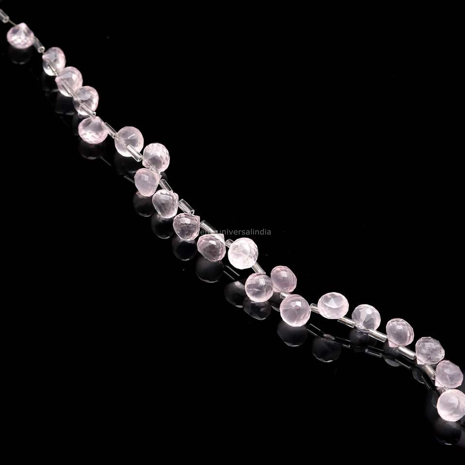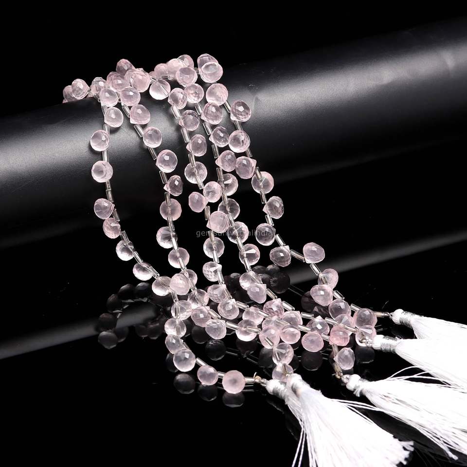 ลูกปัดโรสควอตซ์ธรรมชาติทรงหยดน้ำแบบเหลี่ยมเพชรพลอย ขนาด 7-9 มม. ความยาว 8 นิ้ว สำหรับทำเครื่องประดับ ขายส่งจำนวนมาก