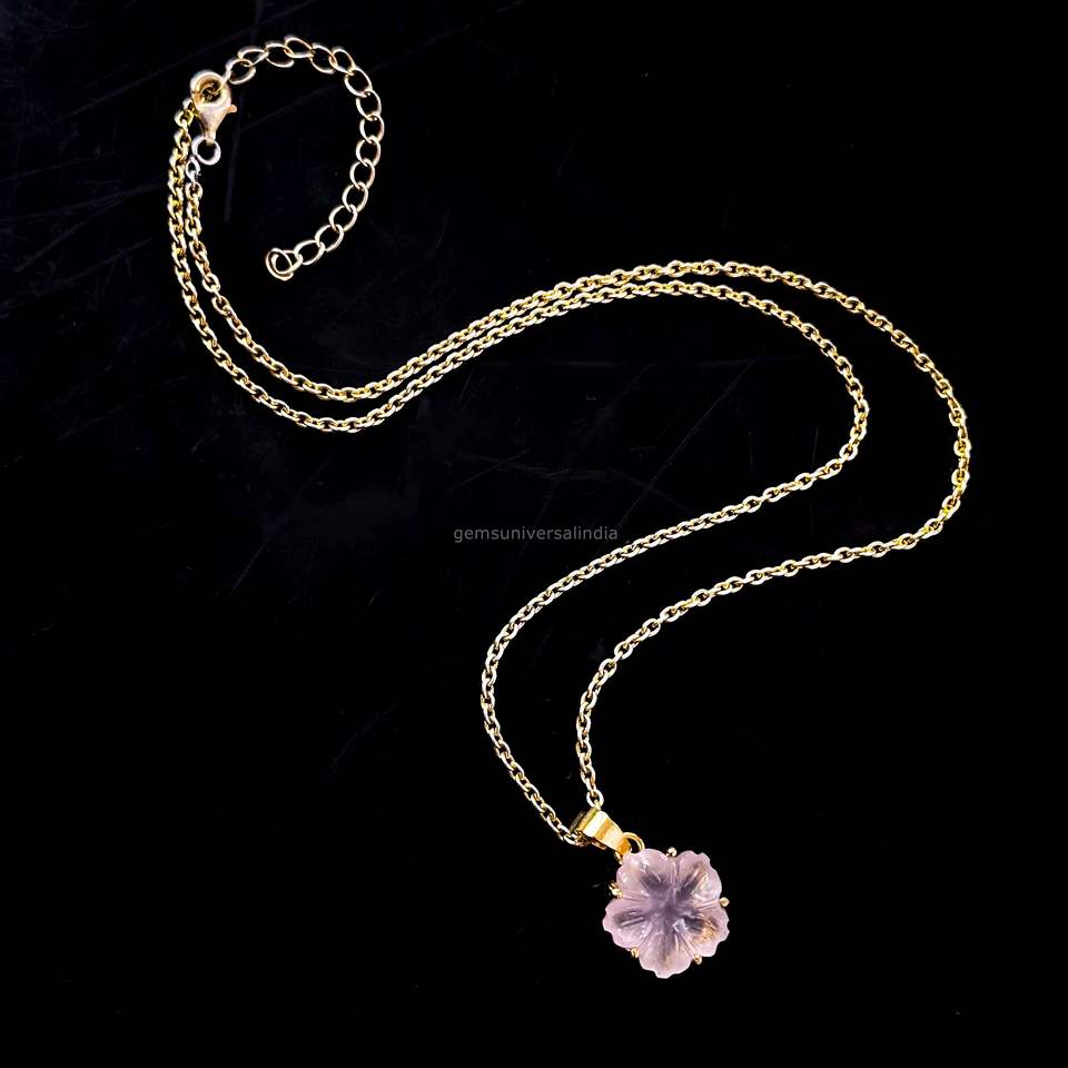 ชื่ออัญมณี:จี้ห้อยคอ รูปดอกไม้ โรสควอตซ์ธรรมชาติ