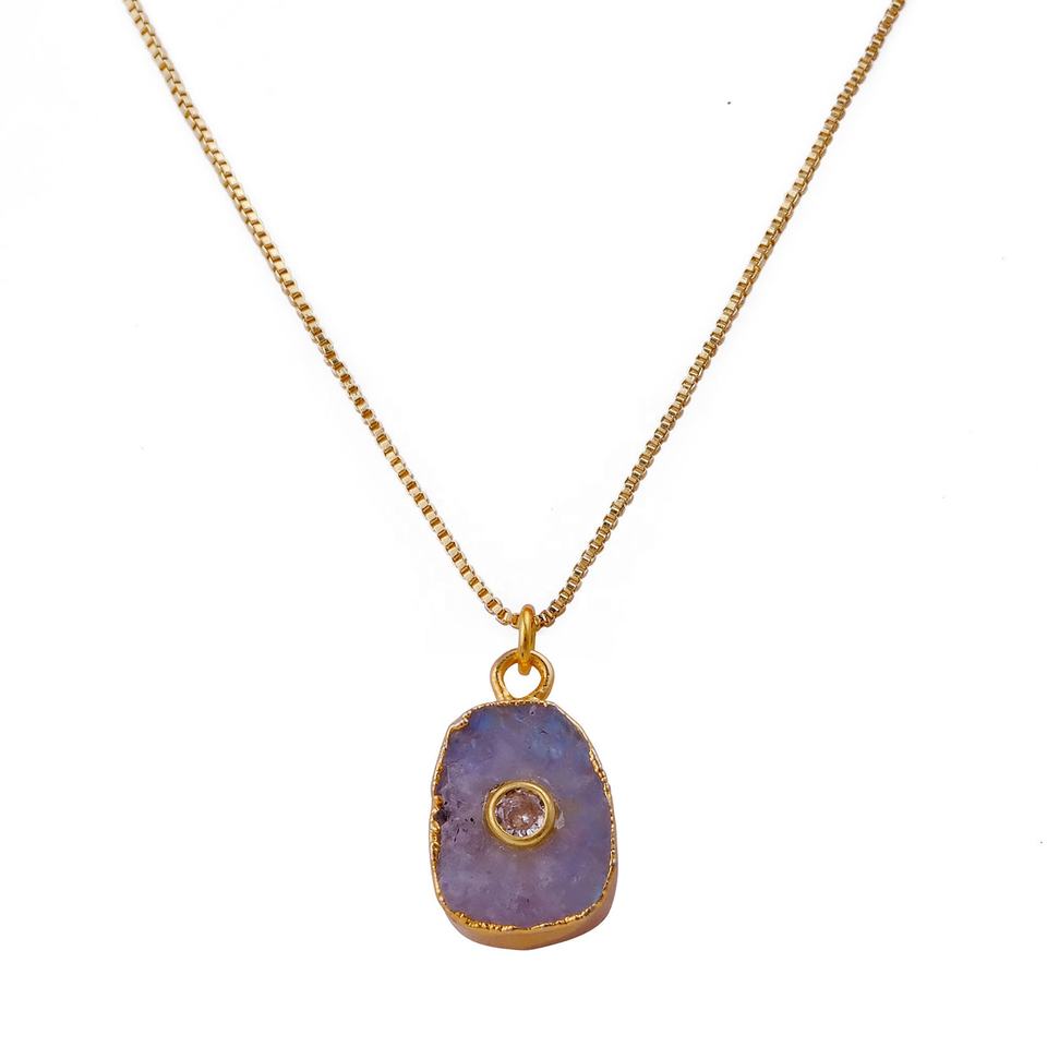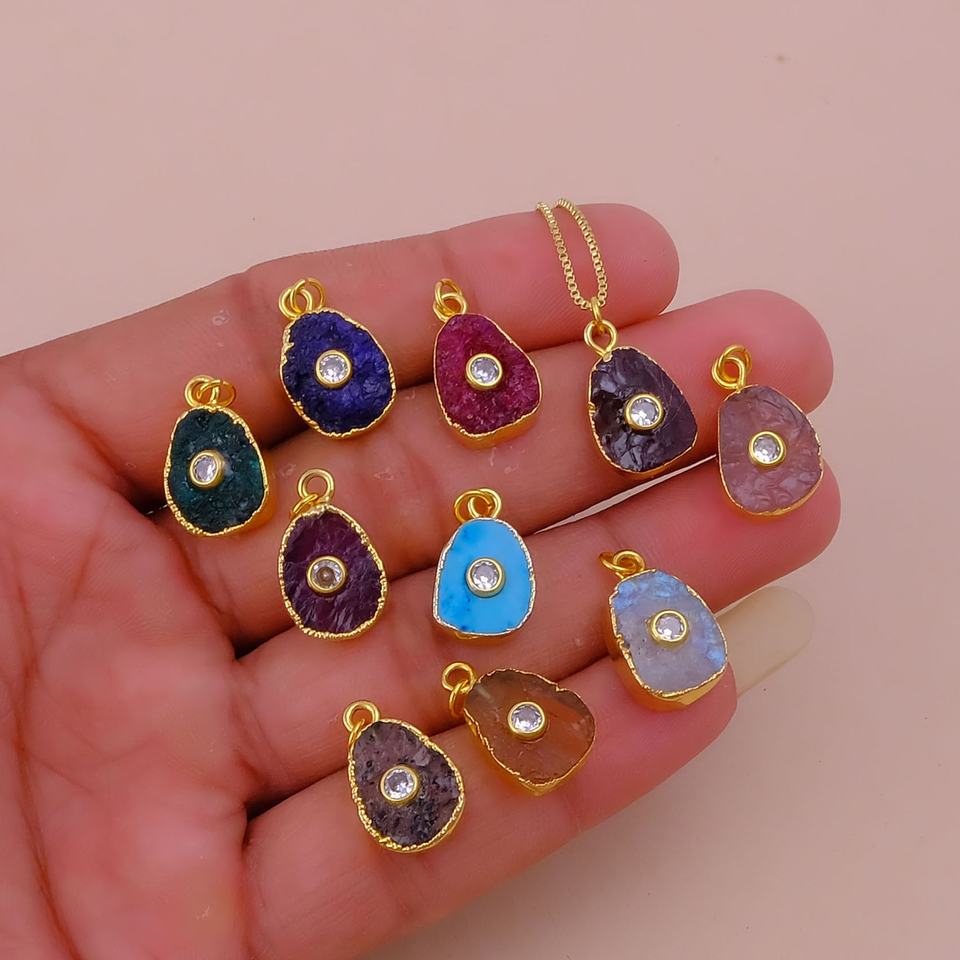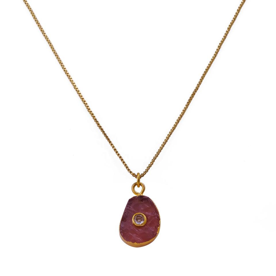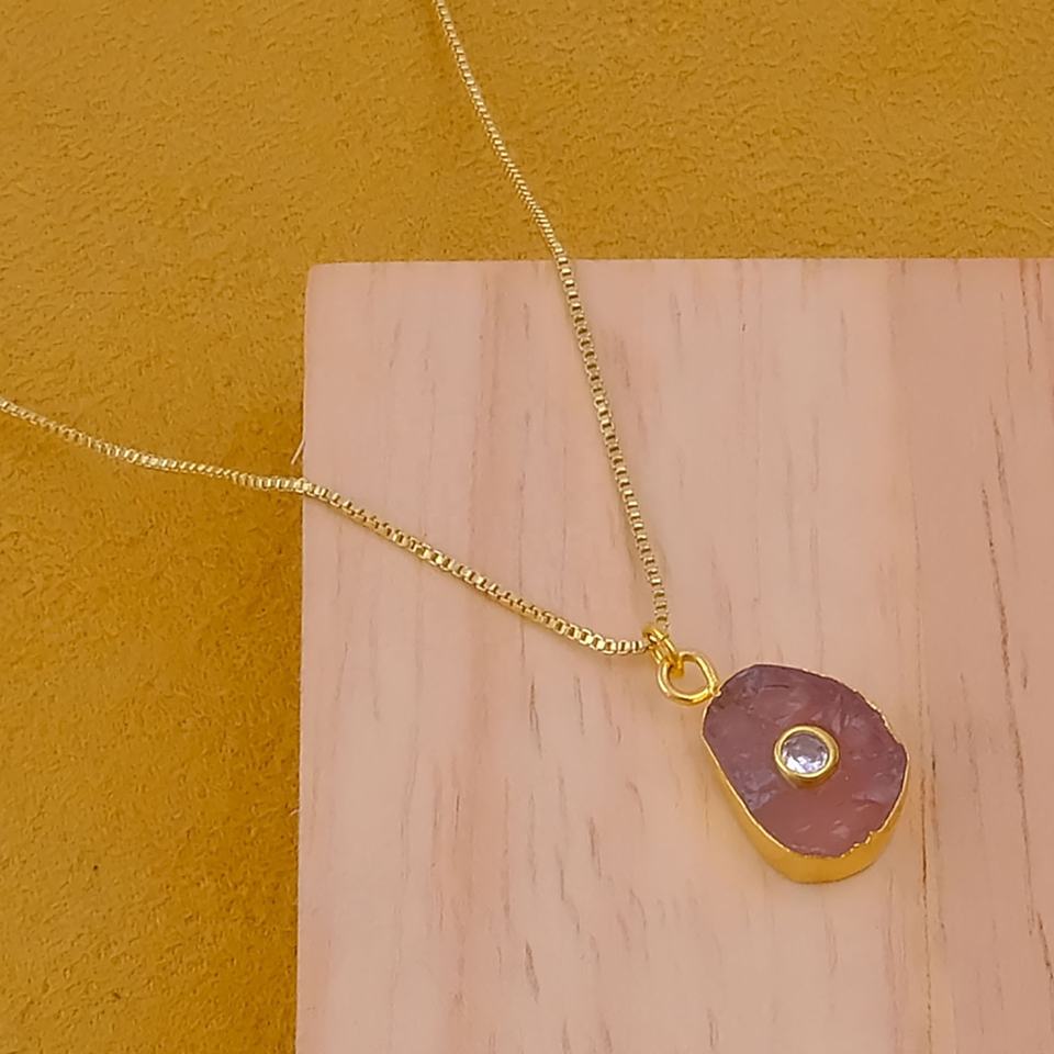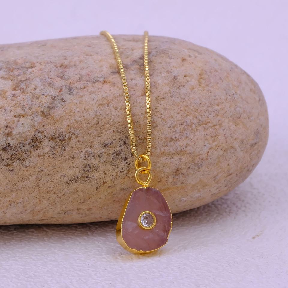 สร้อยคอจี้หินโรสควอตซ์ธรรมชาติชุบทองคำแท้ งานแฮนด์เมด ประดับด้วยพลอยดิบและเพชรคิวบิกเซอร์โคเนีย ดีไซน์ทันสมัย เหมาะสำหรับขายส่งในเดือนตุลาคม