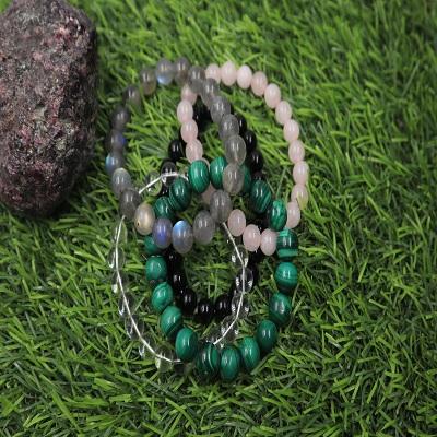 สร้อยข้อมือลูกปัดโรสควอตซ์ธรรมชาติทรงกลม เครื่องประดับคริสตัลบำบัดสำหรับผู้หญิง | สร้อยข้อมือทำมือสุดหรูขนาด 8 มม. พร้อมใบรับรองของขวัญ