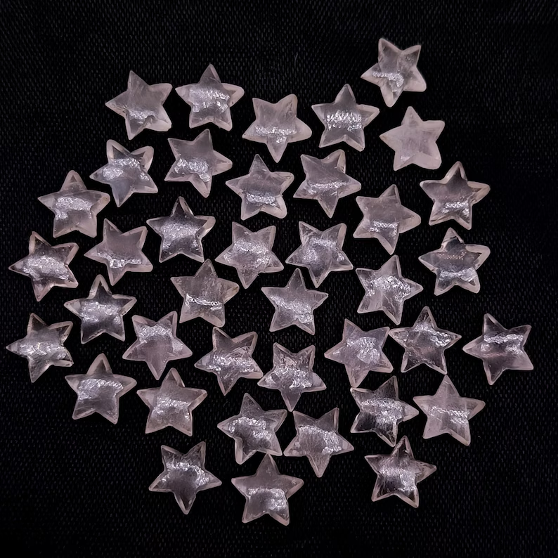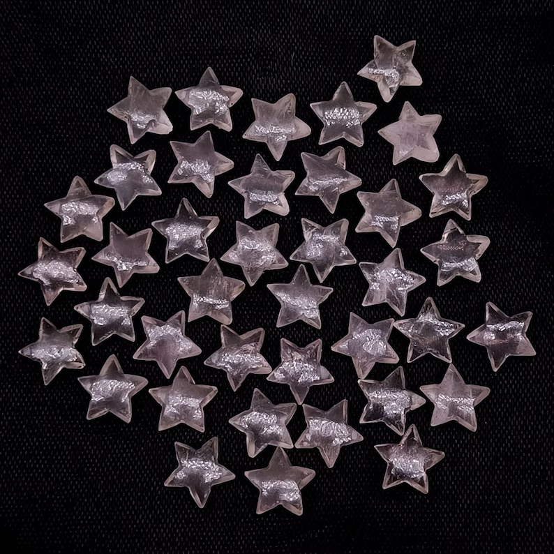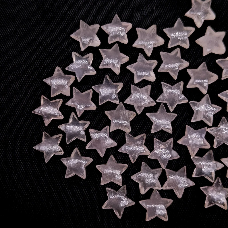 ลูกปัดแกะสลักรูปดาวเรียบทำจากหินโรสควอตซ์