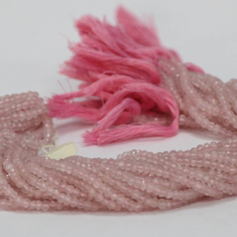 หินควอทซ์โรสธรรมชาติขนาด4มม. ลูกปัดหินอัญมณีเจียระไนเป็นเส้น