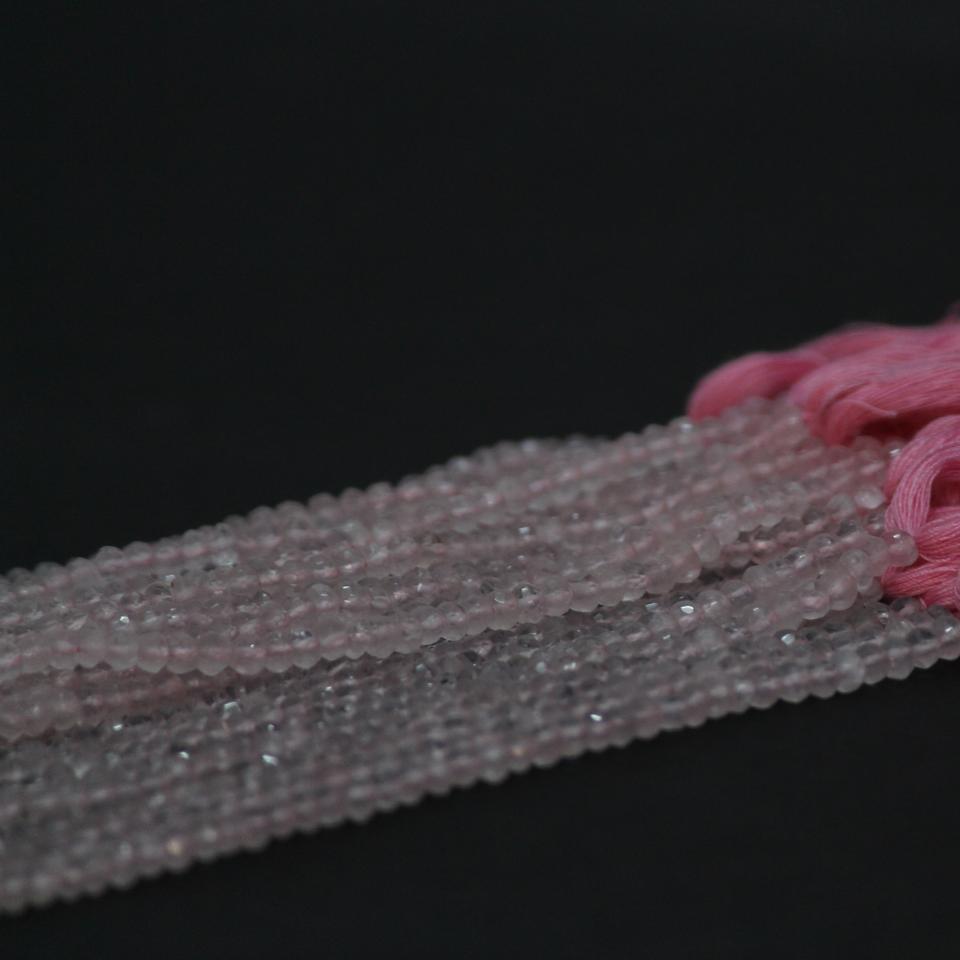Natural Rose Quartz Faceted Rondelle Gemstone Beads Strand
