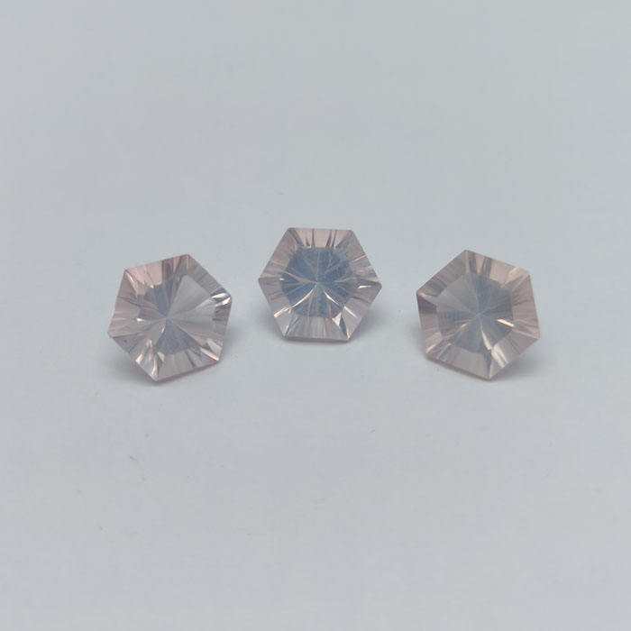 หินควอตซ์ธรรมชาติทรงหกเหลี่ยมเว้า6.66 CTS ตัดเว้า12มม. โรสควอตซ์สะอาดอัญมณีหลวมสีสดใสสำหรับเครื่องประดับ