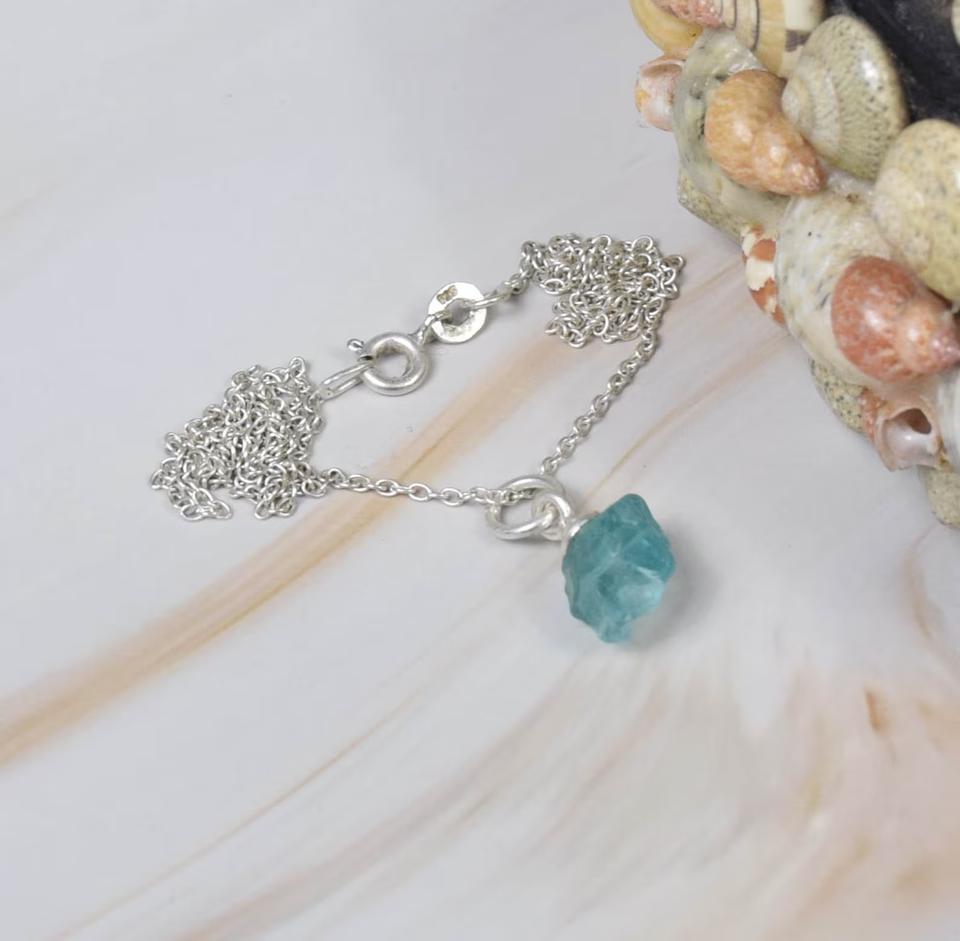 925อะพาไทต์พลอยสีฟ้าธรรมชาติหยาบจี้โซ่ห่วงโซ่ April เครื่องประดับแฮนด์เมดของขวัญสำหรับวันเกิด