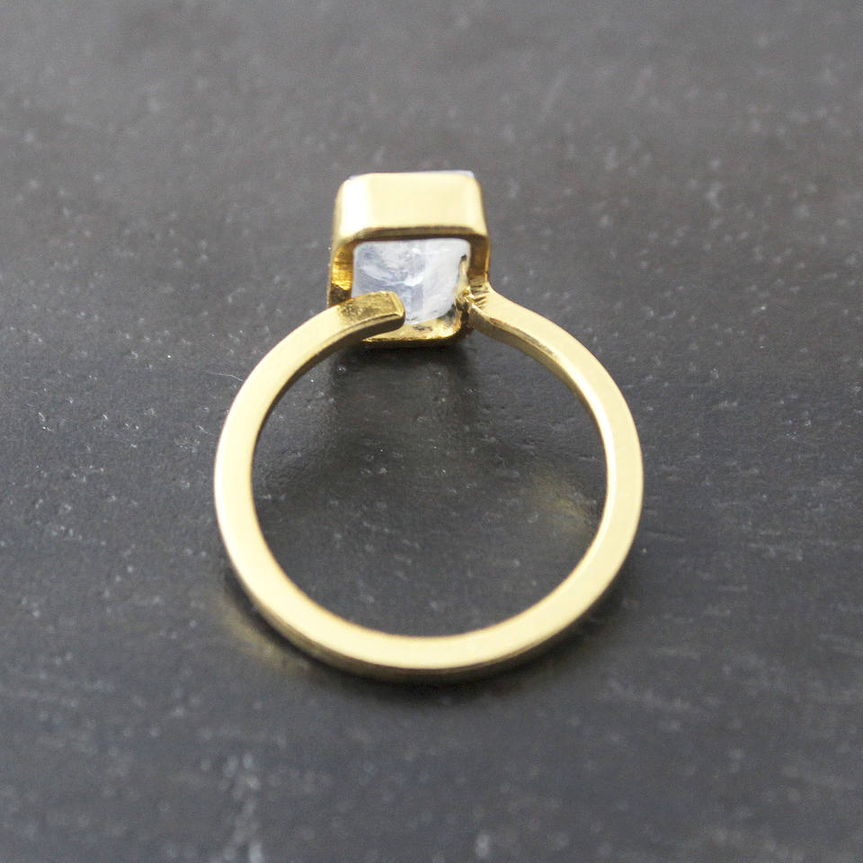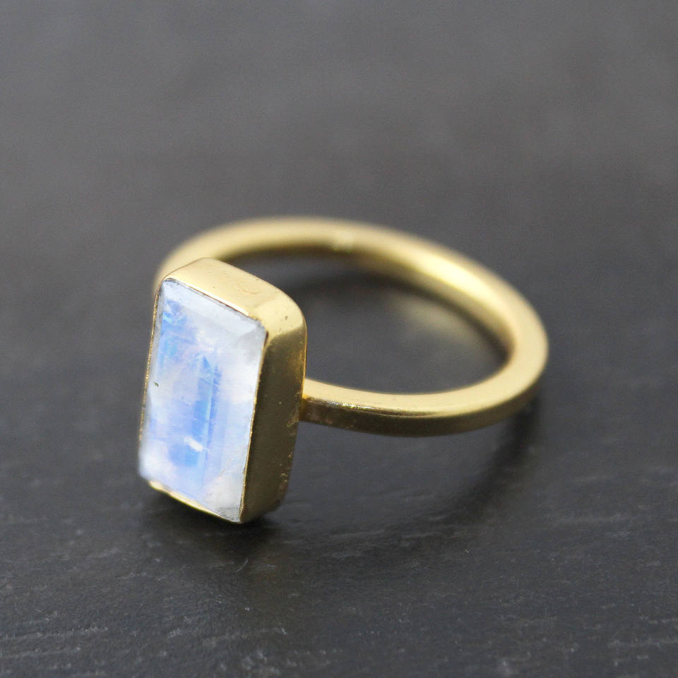 แหวนทองเหลืองปรับได้ลายมูนสโตนหยาบธรรมชาติเครื่องประดับสำหรับผู้หญิง