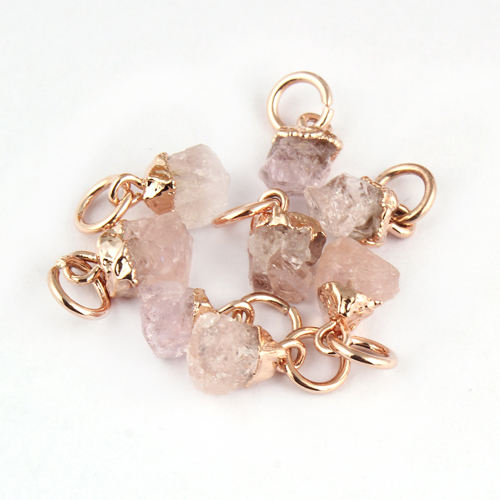 ตัวเชื่อมต่อจี้อัญมณีควอตซ์โรสโกลด์,ชุบทอง24K ผิวหยาบธรรมชาติตัวเชื่อมต่อแฮนด์เมดแบบห่วงเดี่ยว