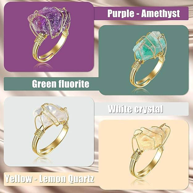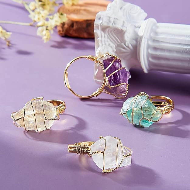 แหวนเงินแท้ดิบแบบวินเทจ ประดับแบบเบเซลล์ ลวดพันปรับขนาดได้ สไตล์โบโฮ แหวนบำบัด ขายส่ง HARI OM CREATIONS