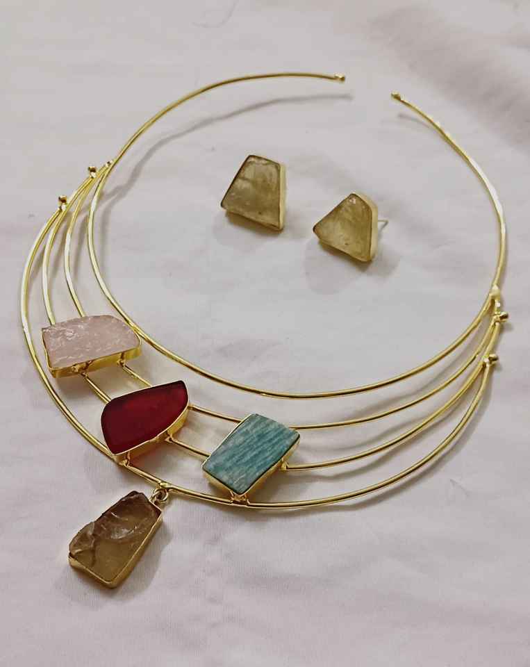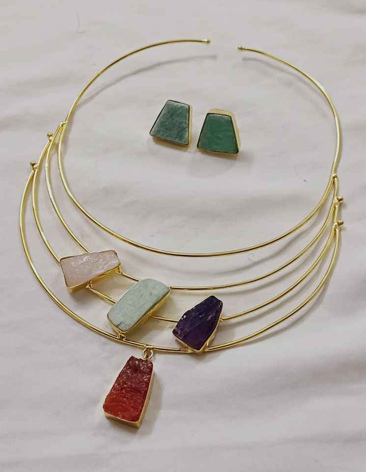 สร้อยคอ hasli หินหยาบธรรมชาติพร้อมกระดุมดีไซน์ล่าสุดสร้อยคอ hasli สำหรับผู้หญิงสวมใส่น้อยที่สุดน้ำหนักเบาและสะดวกสบาย
