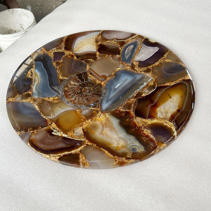 โต๊ะกาแฟหินโมราธรรมชาติแบบกลมมีไฟด้านหลังเป็นเคาน์เตอร์สุดหรูเฟอร์นิเจอร์สำหรับห้องนั่งเล่นใช้ในบ้าน