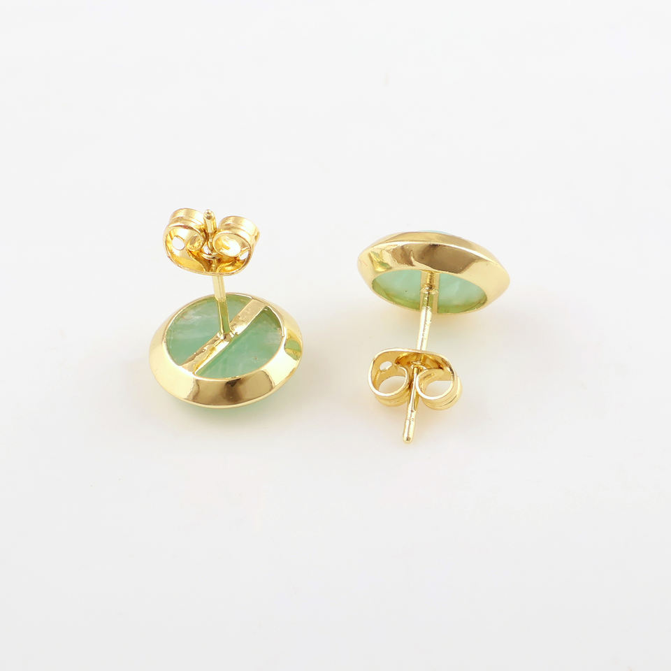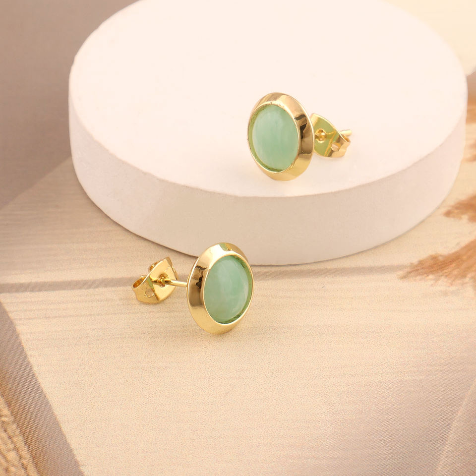 ต่างหูเม็ดเดี่ยวอะมาโซไนต์ทรงกลมตามธรรมชาติของผู้หญิงต่างหูแบบหมุดชุบทองสไตล์มินิมอลแบบสวมใส่ได้เป็นประจำ