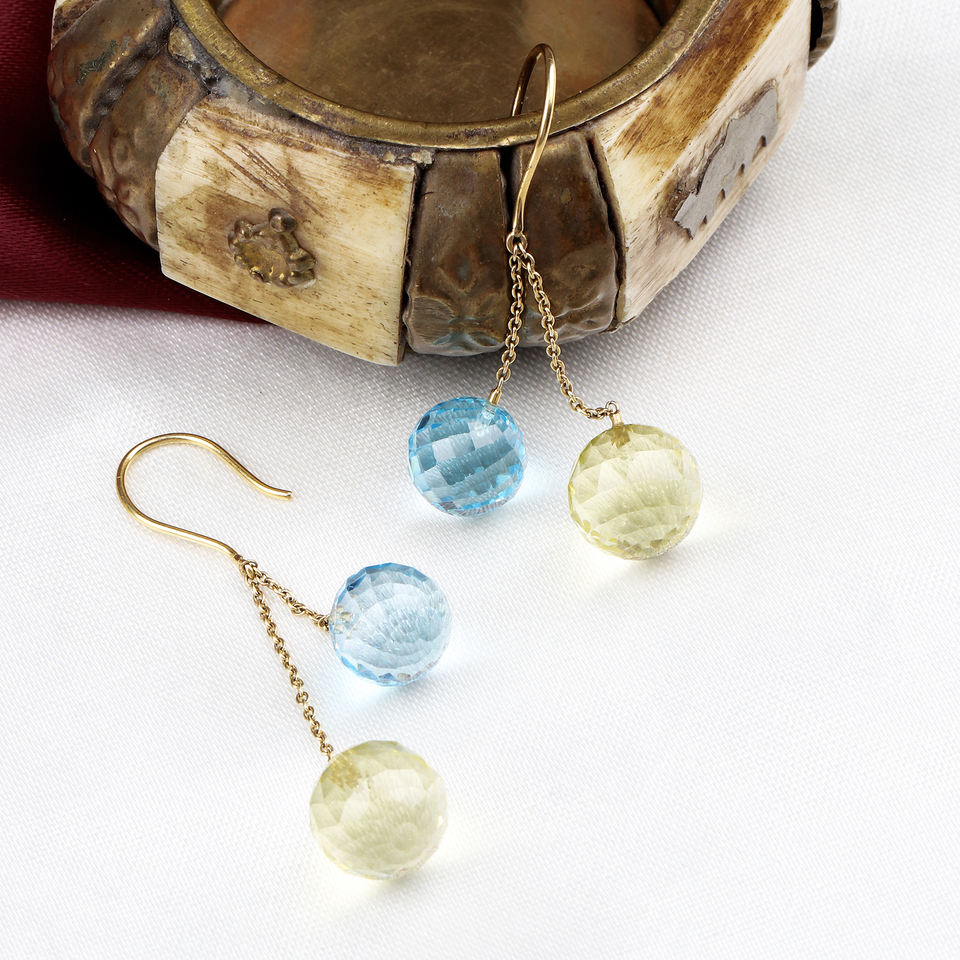 ชื่อผลิตภัณฑ์:ต่างหูบุษราคัมสีฟ้าและเลมอนควอตซ์