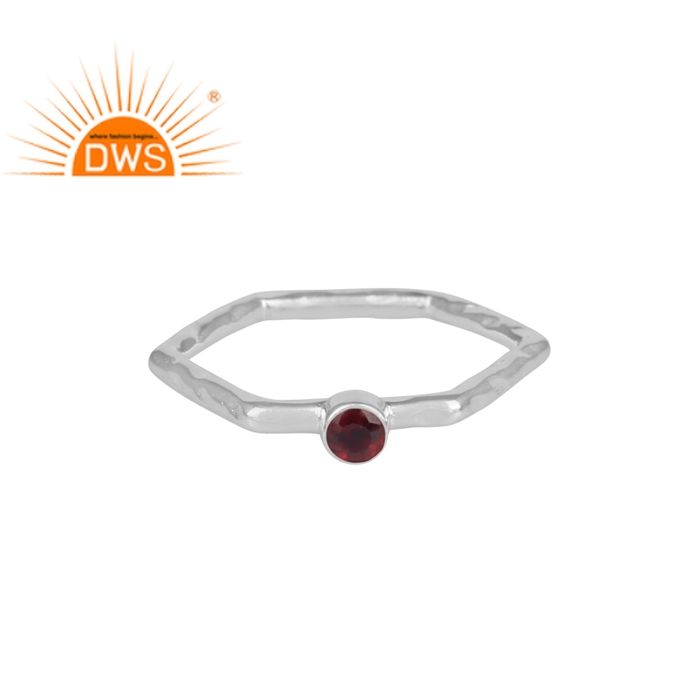 ธรรมชาติรอบตัดโกเมนพลอยปรับ925เงินสเตอร์ลิงหกเหลี่ยมออกแบบแหวนเครื่องประดับผู้ผลิต