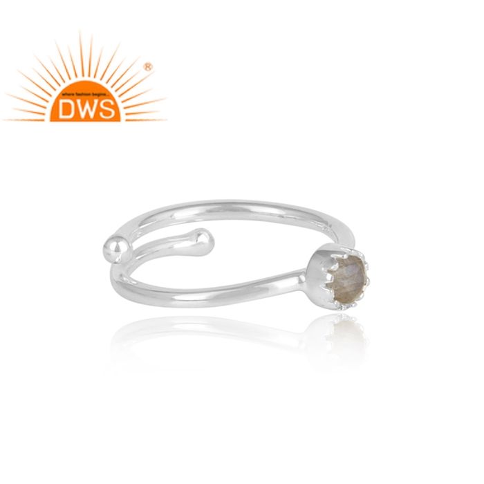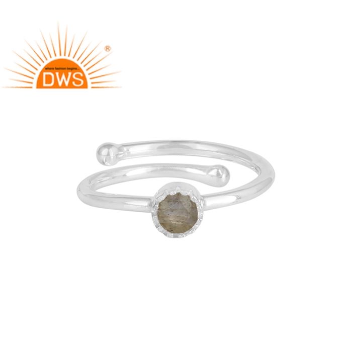 ธรรมชาติรอบตัด Labradorite พลอยมงกุฎแหวนเครื่องประดับผู้ค้าส่ง925เงินสเตอร์ลิงทำด้วยมือแหวนเครื่องประดับปรับ