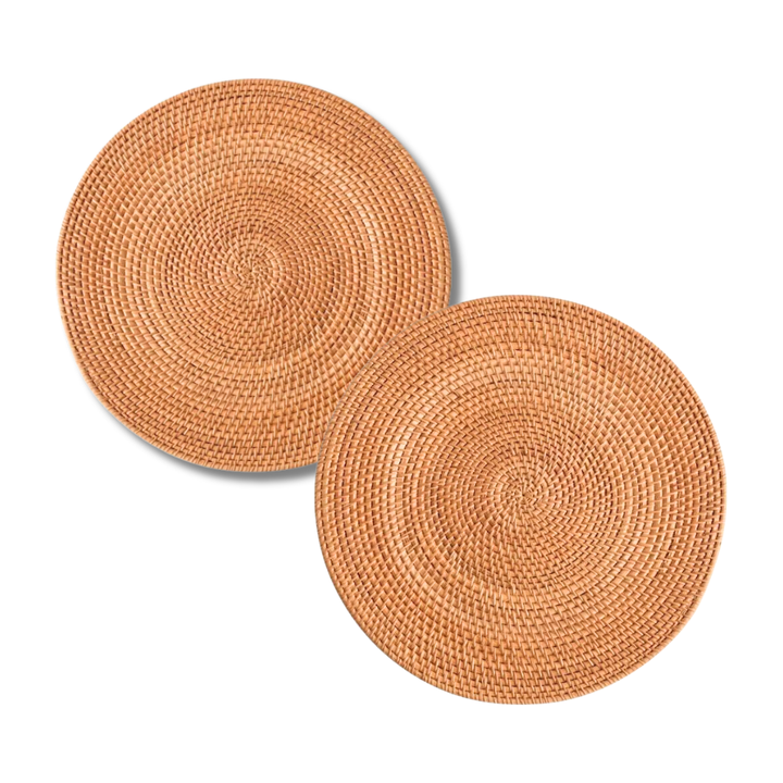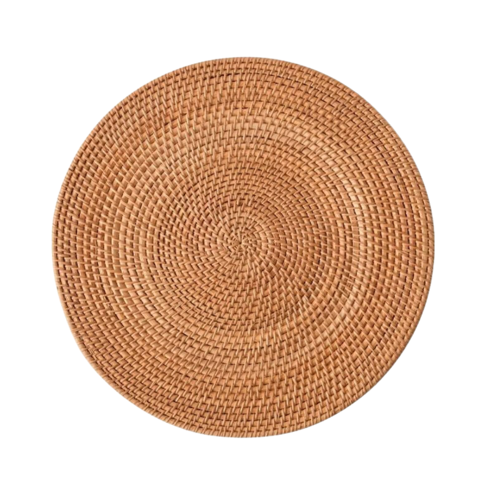 แผ่นรองจานหวายทรงกลมธรรมชาติทนทานความร้อนเป็นมิตรกับสิ่งแวดล้อมโต๊ะรับประทานอาหารสำหรับงานแต่งงาน