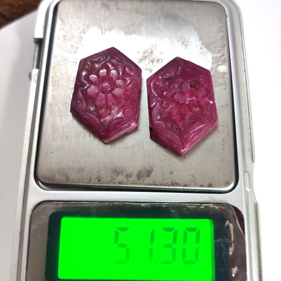 พลอยทับทิมธรรมชาติแกะสลัก Cabochon คู่ทับทิมหกเหลี่ยมแกะสลักหิน51.30 Cts พลอยหลวมในราคาโรงงานผู้ผลิต