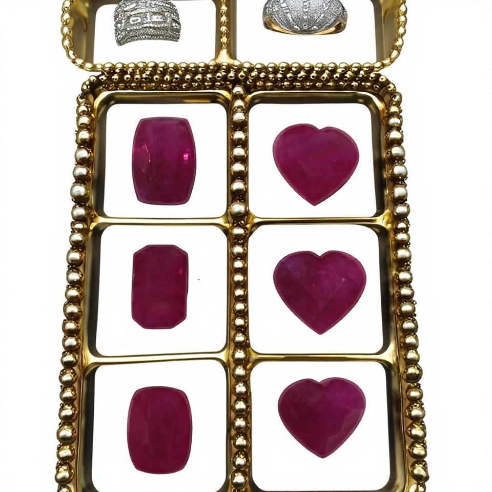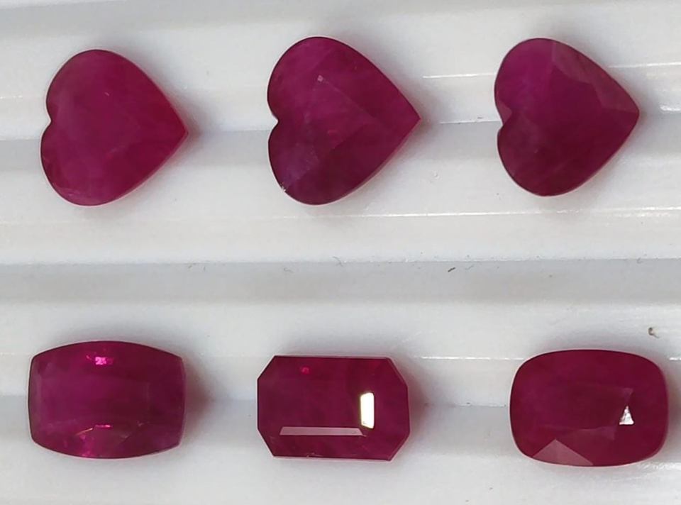 ทับทิมธรรมชาติจากรัฐราชสถาน รูปทรงหัวใจและแปดเหลี่ยมแบบคุชชั่นคัท หินมีค่าสำหรับทำแหวน