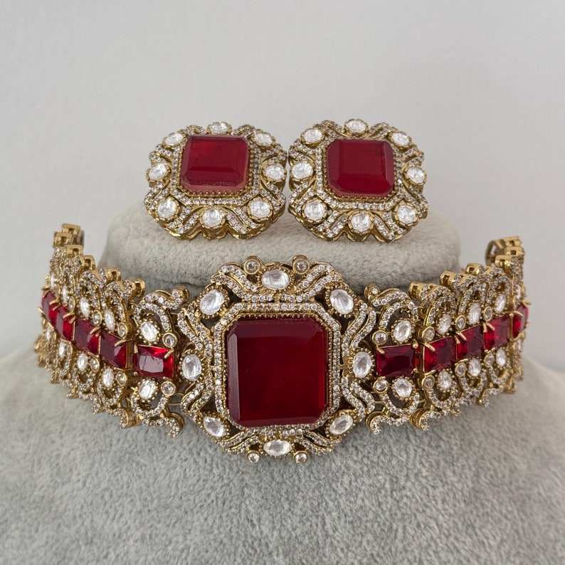 Keyword:Natural Ruby Duplet Choker Necklace Pakistani Birdal Wedding Jewelry