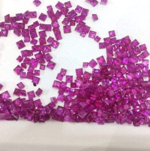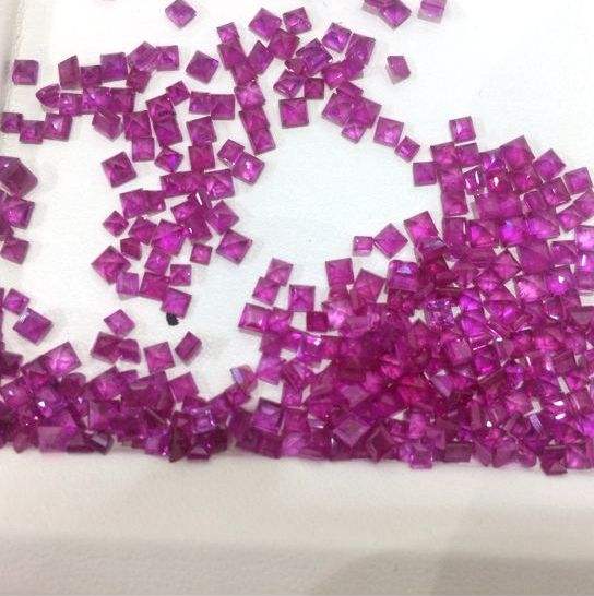 พลอยทับทิมธรรมชาติทรงสี่เหลี่ยมแบบอัสเชอร์เจียระไนขัดเงาพร้อมประกายรุ้ง ขนาดปรับเทียบสำหรับทำเครื่องประดับ