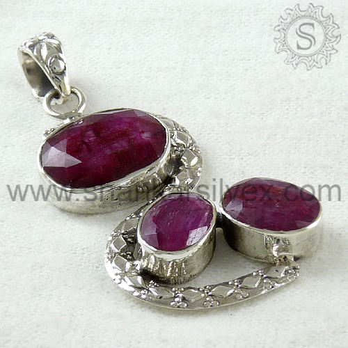 อัญมณีทับทิมธรรมชาติ 925 เงินสเตอร์ลิงการออกแบบที่ไม่ซ้ํากันอินเทรนด์จี้คลาสสิกออกแบบสั่งทําพิเศษผู้ผลิตเครื่องประดับอินเดีย