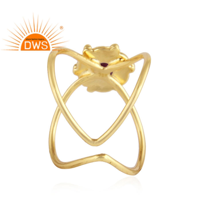 เครื่องประดับอัญมณีทับทิมธรรมชาติแหวนชุบทองสำหรับผู้หญิงคอลเลกชันคลาสสิก