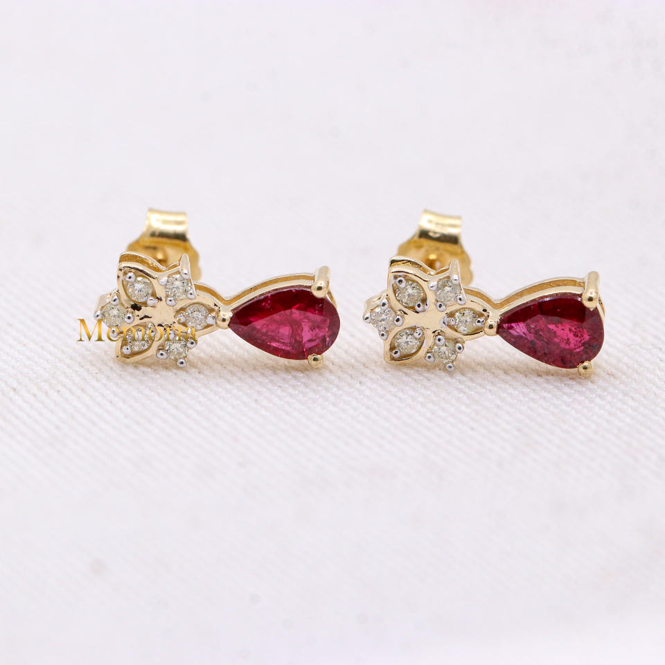 ต่างหูเม็ดเดี่ยวสีทอง14K ทำด้วยมือสำหรับผู้หญิงอัญมณีเพชรทับทิมสำหรับงานแต่งงานขายส่ง