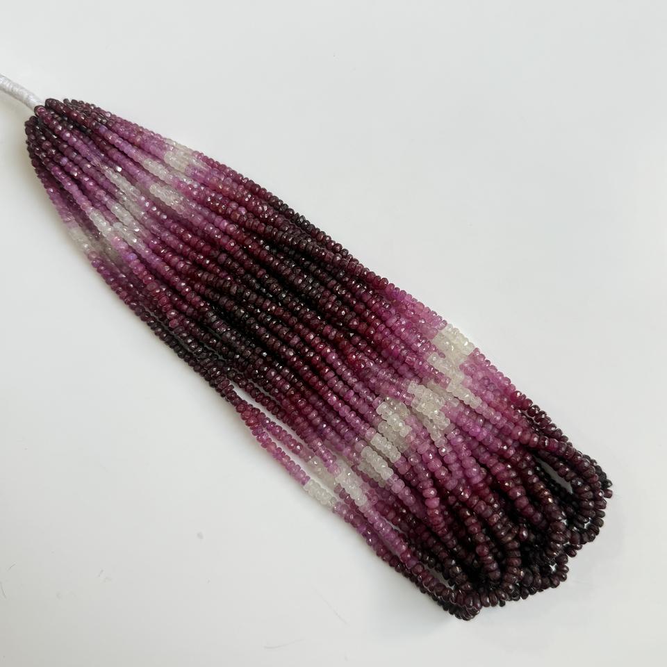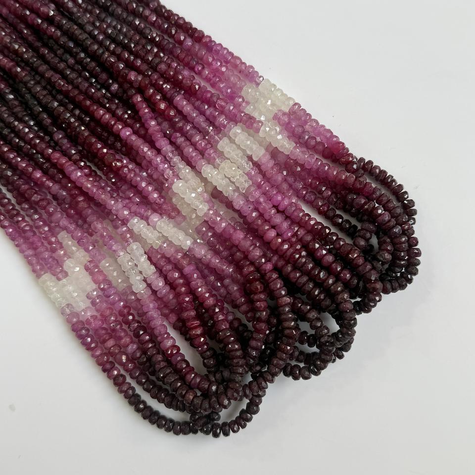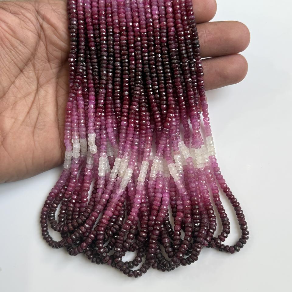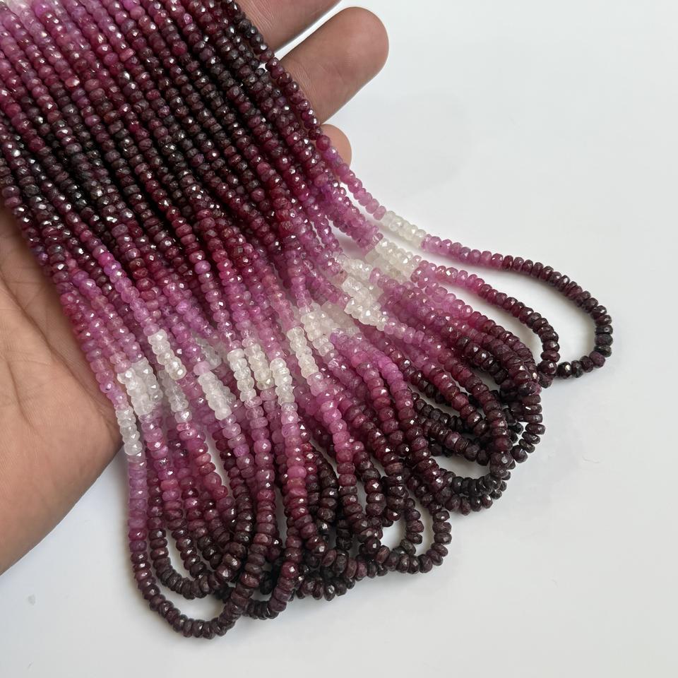 ลูกปัดทับทิมธรรมชาติทรงรอนเดลเหลี่ยมเพชรพลอยไล่เฉดสีขนาด 3-4 มม. ลูกปัดพลอยทับทิมไล่เฉดสีสำหรับทำเครื่องประดับ