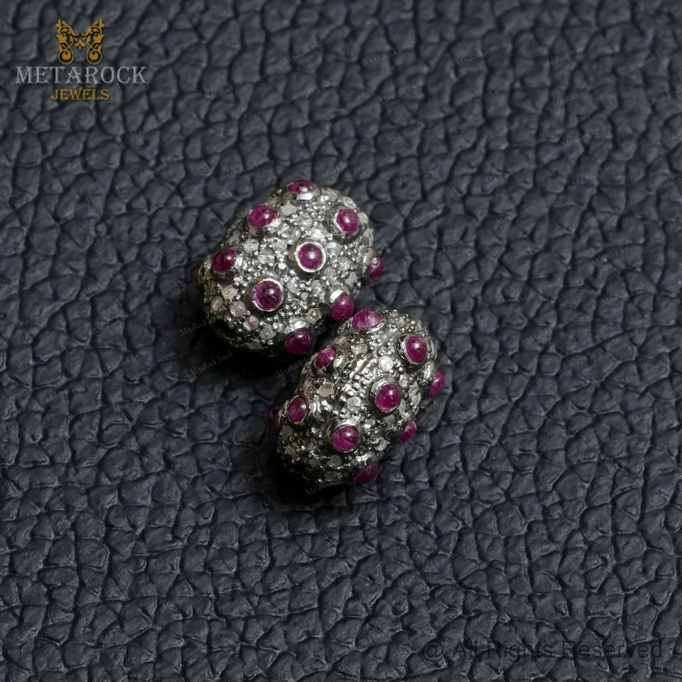 หินทับทิมธรรมชาติออกซิไดซ์925เงินการค้นหาที่เรียบง่ายเครื่องประดับเพชรตัดดอกกุหลาบดีไซน์ใหม่ทำด้วยมือ