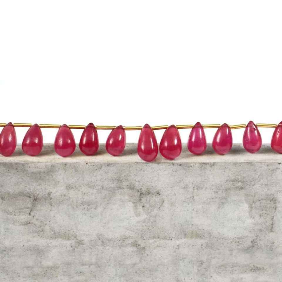 ตุ้มหูทับทิมธรรมชาติลูกปัด Briolette แบบหลวมสำหรับสร้อยคอต่างหูเครื่องประดับทำขายส่งลูกปัดทับทิมสีแดงผู้จัดจำหน่ายอินเดีย