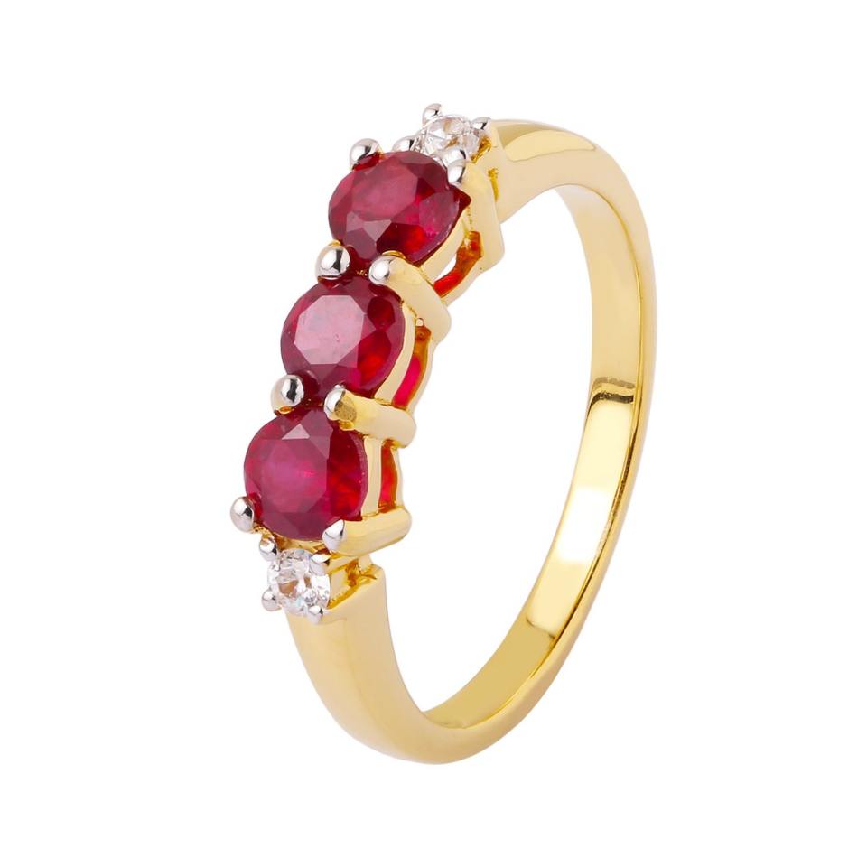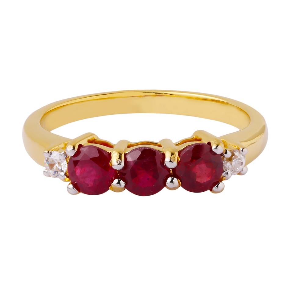 แหวนทับทิมไตรภาคทำจากทับทิมธรรมชาติชุบโรเดียมสำหรับงานแต่งงานและงานเลี้ยง