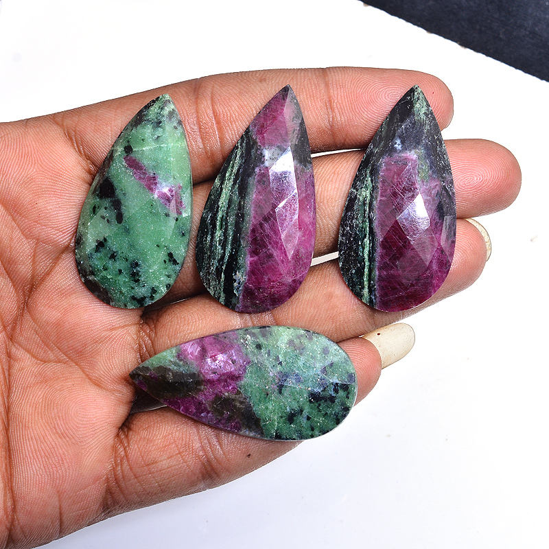 ชื่อผลิตภัณฑ์:พลอยทับทิม zoisite ลูกแพร์โรเซคัทหลังแบนขนาด45X22มม.