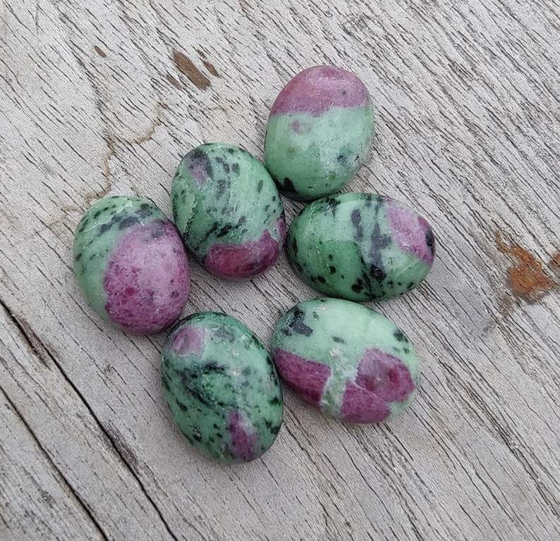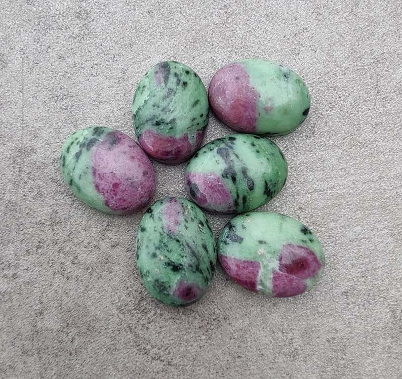 พลอยรูบี้โซไซต์ธรรมชาติทรงรีแบบคาโบชอง ขนาดปรับเทียบแล้ว สำหรับทำเครื่องประดับและงานฝีมือ