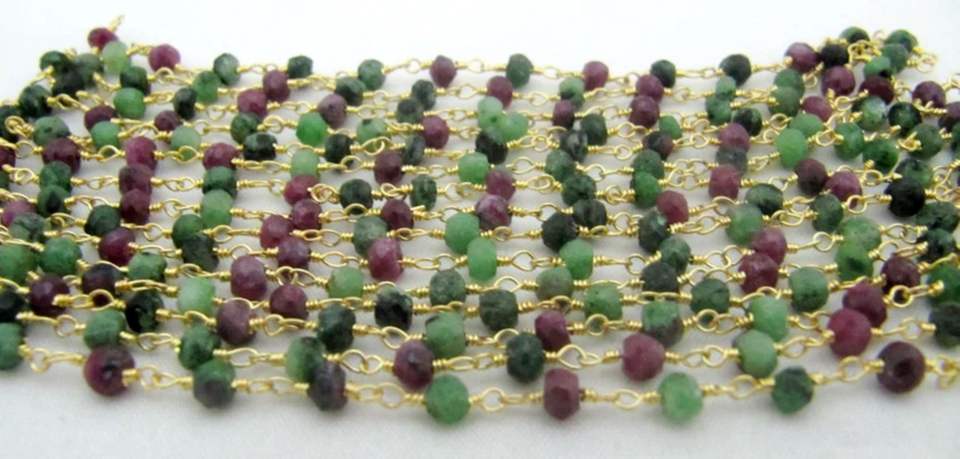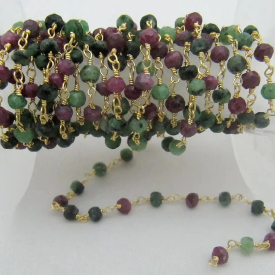 สร้อยพลอยเทียมทับทิมธรรมชาติขนาด3-4มม. พันรอบด้วยลวดทำมือ