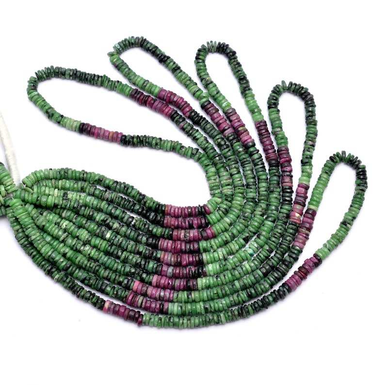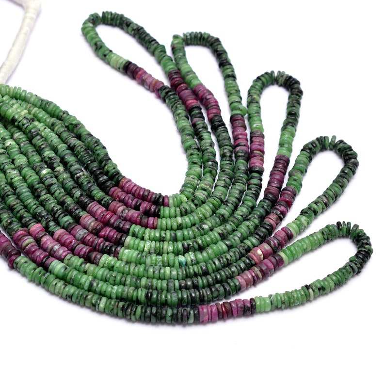 สายลูกปัดยางแบบเรียบของ Heishi ทับทิมธรรมชาติขนาด5-6มม. ลูกปัดหินทับทิมหลวมสำหรับทำเครื่องประดับจากผู้ขายอินเดีย