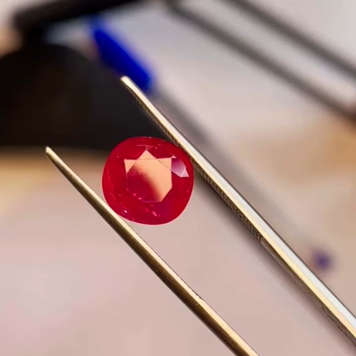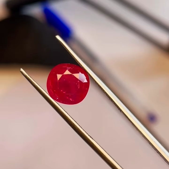 พลอยทับทิมธรรมชาติทรงคุชชั่น ต้นกำเนิดจากโมซัมบิก ผ่านการอบความร้อน 2.79 กะรัต คุณภาพ AAA พร้อมความเงางาม ประณีตในการตัดและขัดเงา