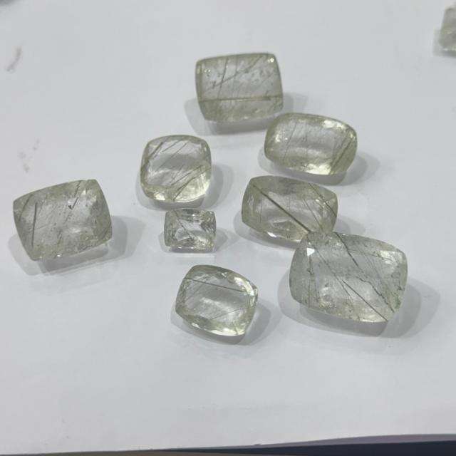 เบาะควอตซ์ Rutile ธรรมชาติตัดหินหลวมขนาดฟรีพลอยควอตซ์ Rutilated เบาะ