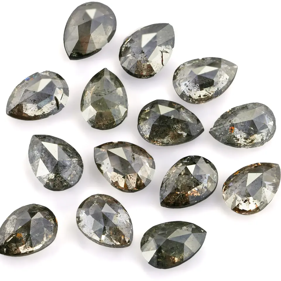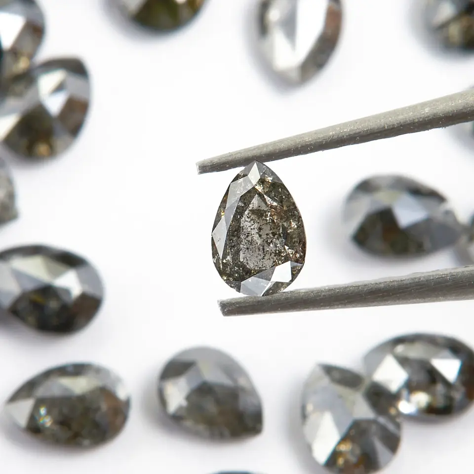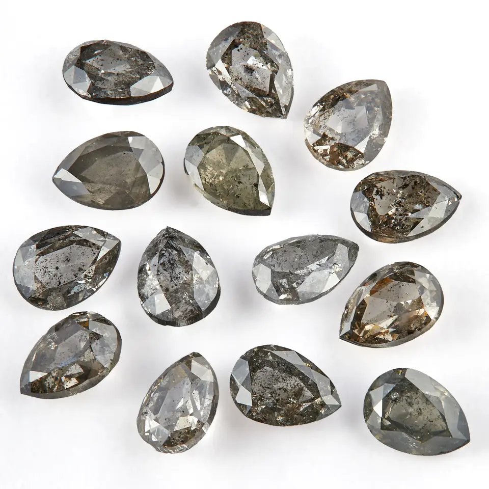 เพชรรูปทรงลูกแพร์แบบธรรมชาติ เกลือและพริกไทย คุณภาพการเจียระไนเยี่ยมและดี เหมาะสำหรับทำเครื่องประดับ