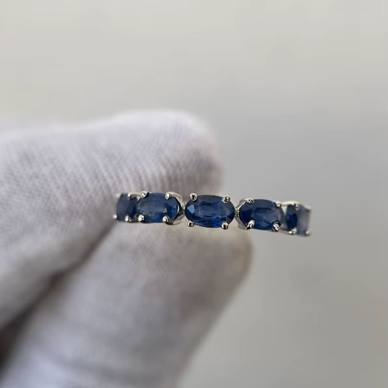 Natural Sapphire Ring Oval Cut Five Stone Sapphire Engagement Proposal Blue Sapphire Jewelry For Her