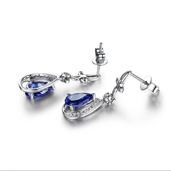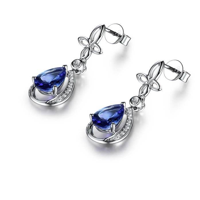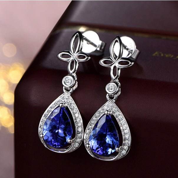 ต่างหูระย้าแบบวินเทจทำจากไพลินธรรมชาติต่างหูพลอยแซฟไฟร์สีน้ำเงินต่างหูเงิน925ไพลินเครื่องประดับสำหรับการหมั้น
