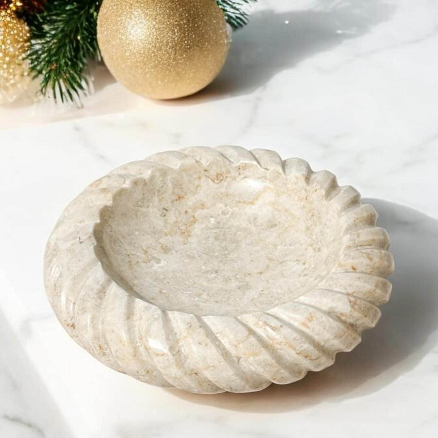 ชามหินอ่อนสีเบจธรรมชาติ ขอบหยัก ทำด้วยมือ สำหรับตกแต่งผนังห้องรับประทานอาหาร ห้องครัว ห้องนั่งเล่น วิลล่าสไตล์โมเดิร์น หรูหรา ทนไฟ