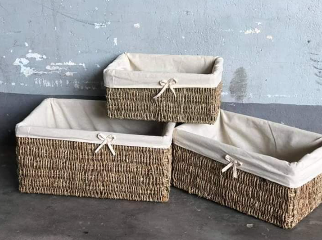 ตะกร้าหญ้าทะเลธรรมชาติที่เหมาะสำหรับการจัดระเบียบห้องนั่งเล่นอย่างยั่งยืนและการตกแต่งภายใน