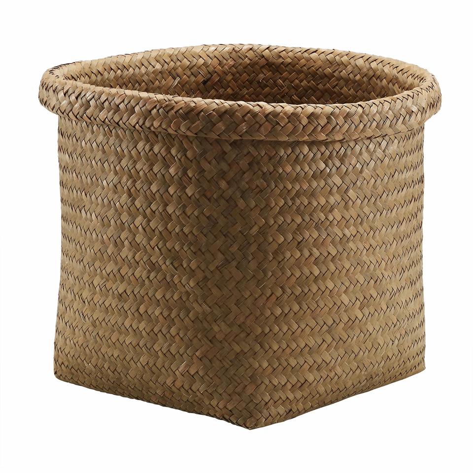 ตะกร้าเก็บของพับได้จากหญ้าทะเล:ขนาด: กว้าง 11.8 x สูง 11.8 นิ้ว