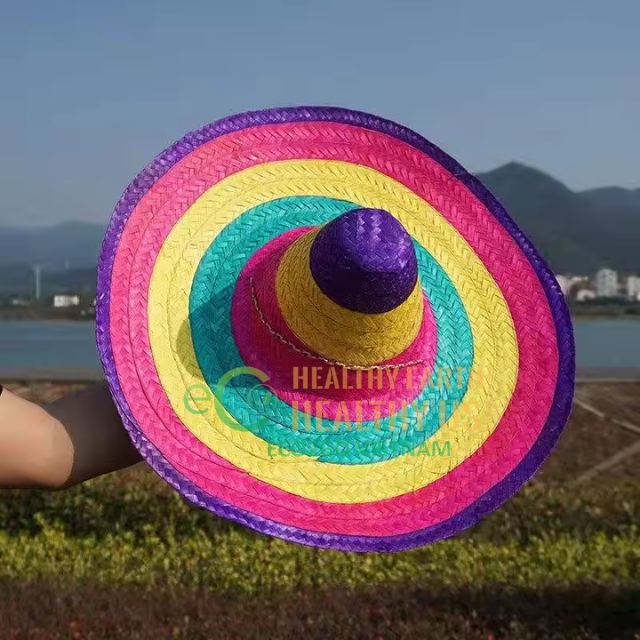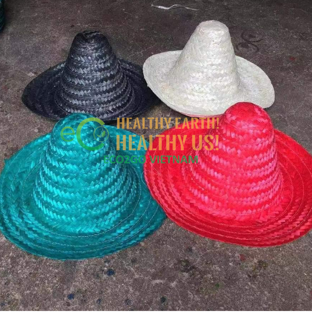 Natural Seagrass Mexican Sombrero Hat With Custom Design and Logo / Flat Round Top Sunhat Breathable for Summer Beach straw hat