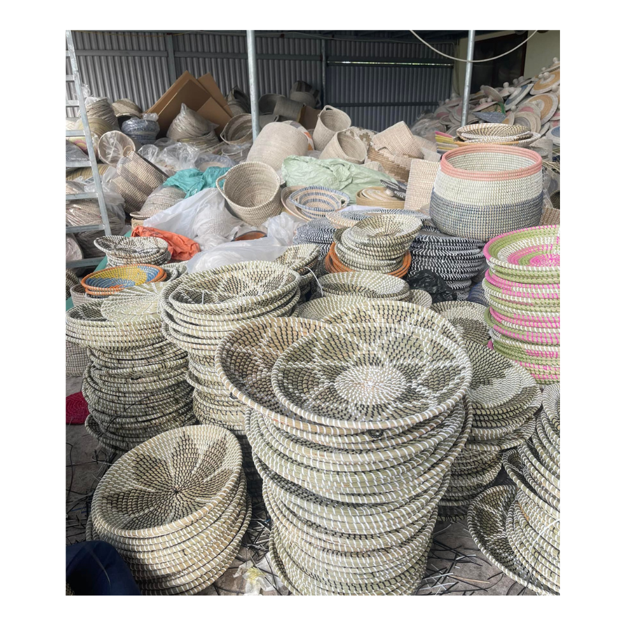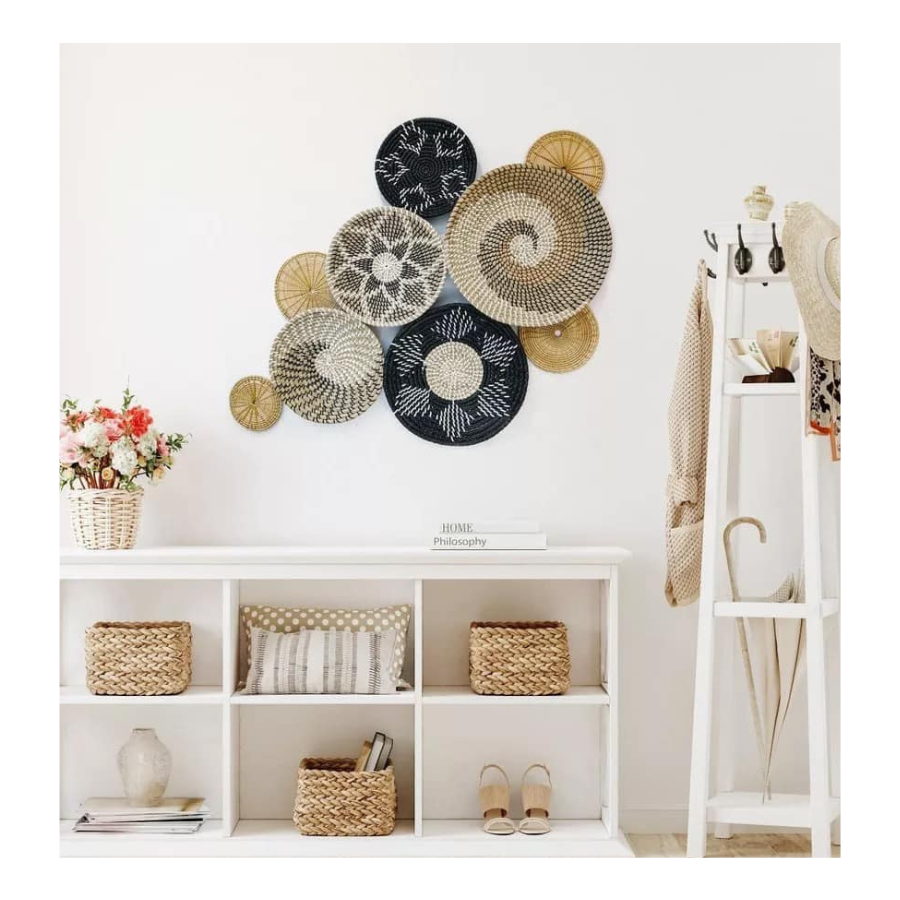 จานแขวนผนังหญ้าทะเลธรรมชาติจากเวียดนามแบบชนบทและถาดเสิร์ฟอาหารอเนกประสงค์