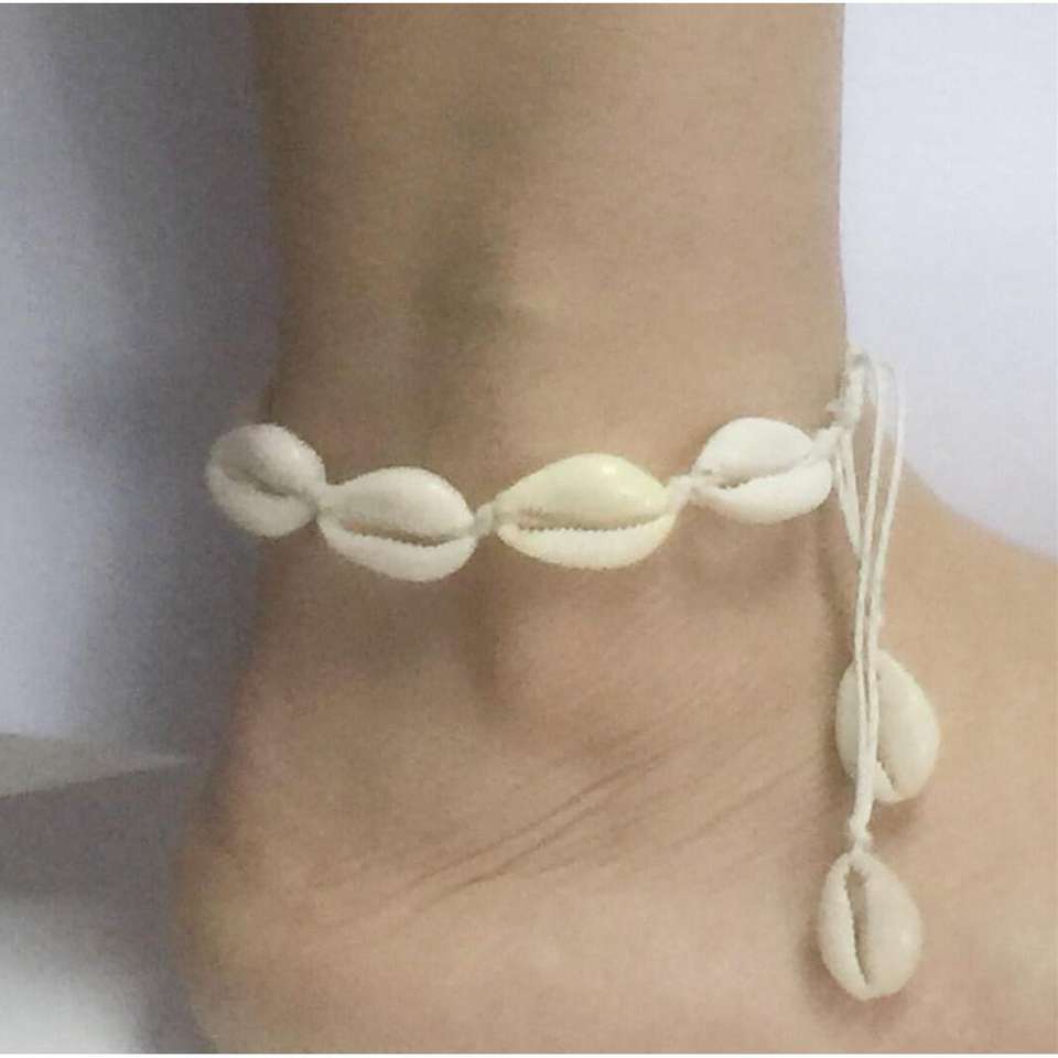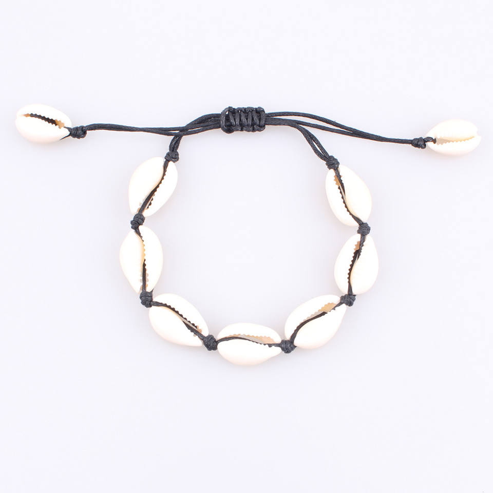 สร้อยข้อเท้าเชือกถักมือจากเปลือกหอยธรรมชาติ สีขาว สไตล์ลำลอง เครื่องประดับสำหรับทุกเพศ ผลิตจากเมืองอี้หวู่