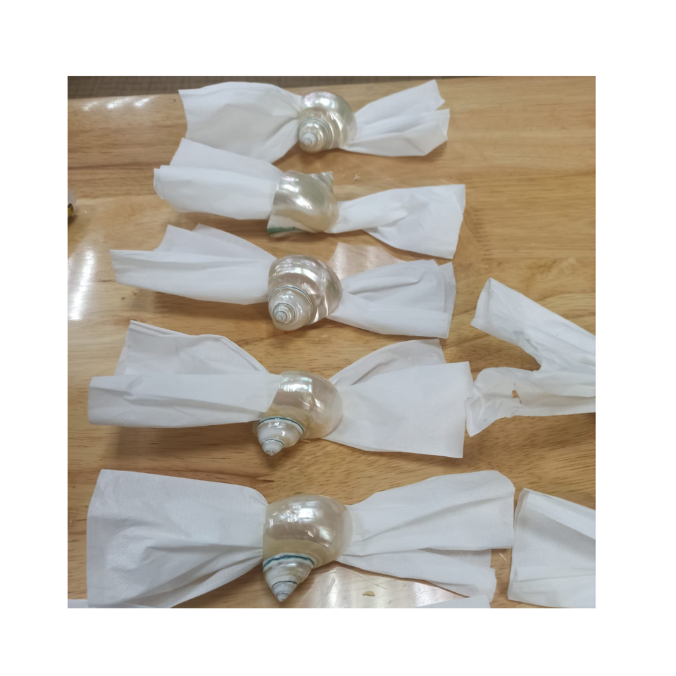 ห่วงรัดผ้าเช็ดปากเปลือกหอยธรรมชาติแหวนสเตนเลสประดับมุกสำหรับงานแต่งงานของตกแต่งแบบเวียดนาม