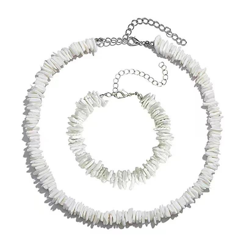 ชุดสร้อยคอและสร้อยข้อมือเปลือกหอยธรรมชาติ สีขาว รูปทรงไม่สม่ำเสมอ เครื่องประดับแฟชั่นสำหรับผู้หญิง