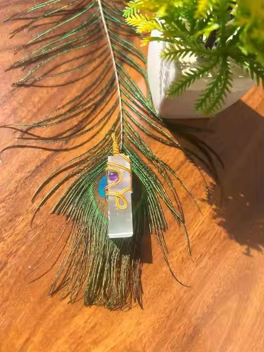 Polished Natural Selenite Crystal Pendant Spiritual Energy Meditation Jewelry Feng Shui Healing Protection Spiritual Pillar